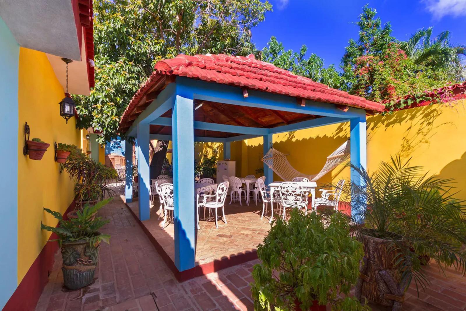 Hostal Casa Melian TRINIDAD. Located on one of the main streets, probably the most popular with tourists. Very central and -at the same time- quiet and with little vehicle traffic. Around it, you will find shops, restaurants, bars, colonial streets, museums, palaces, monuments and nightlife (bars, terraces, dance halls...). Perfect to get to know Trinidad without the need for taxis.